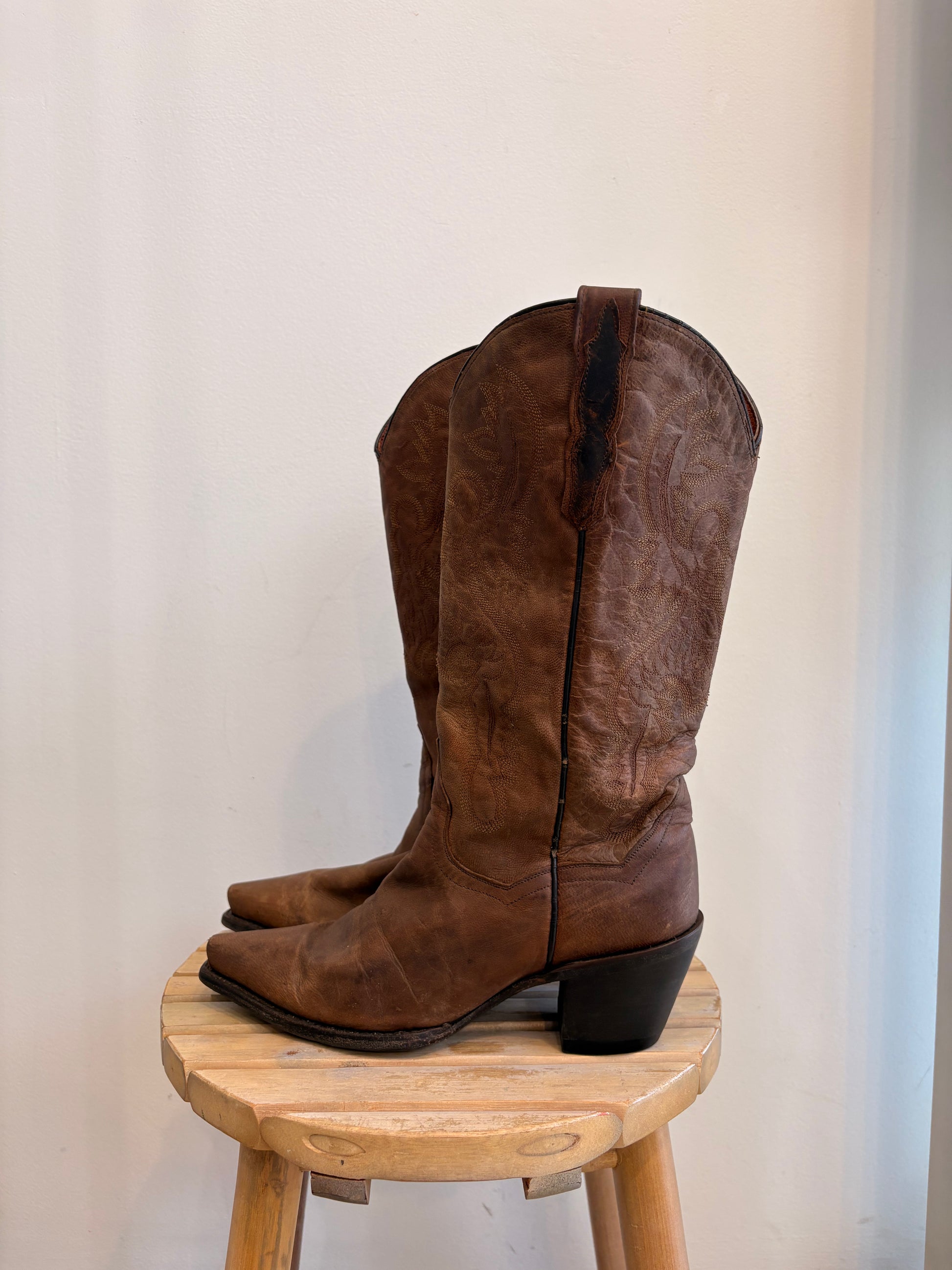 Authentic Vintage brown leather cowboy boots with a western vibe