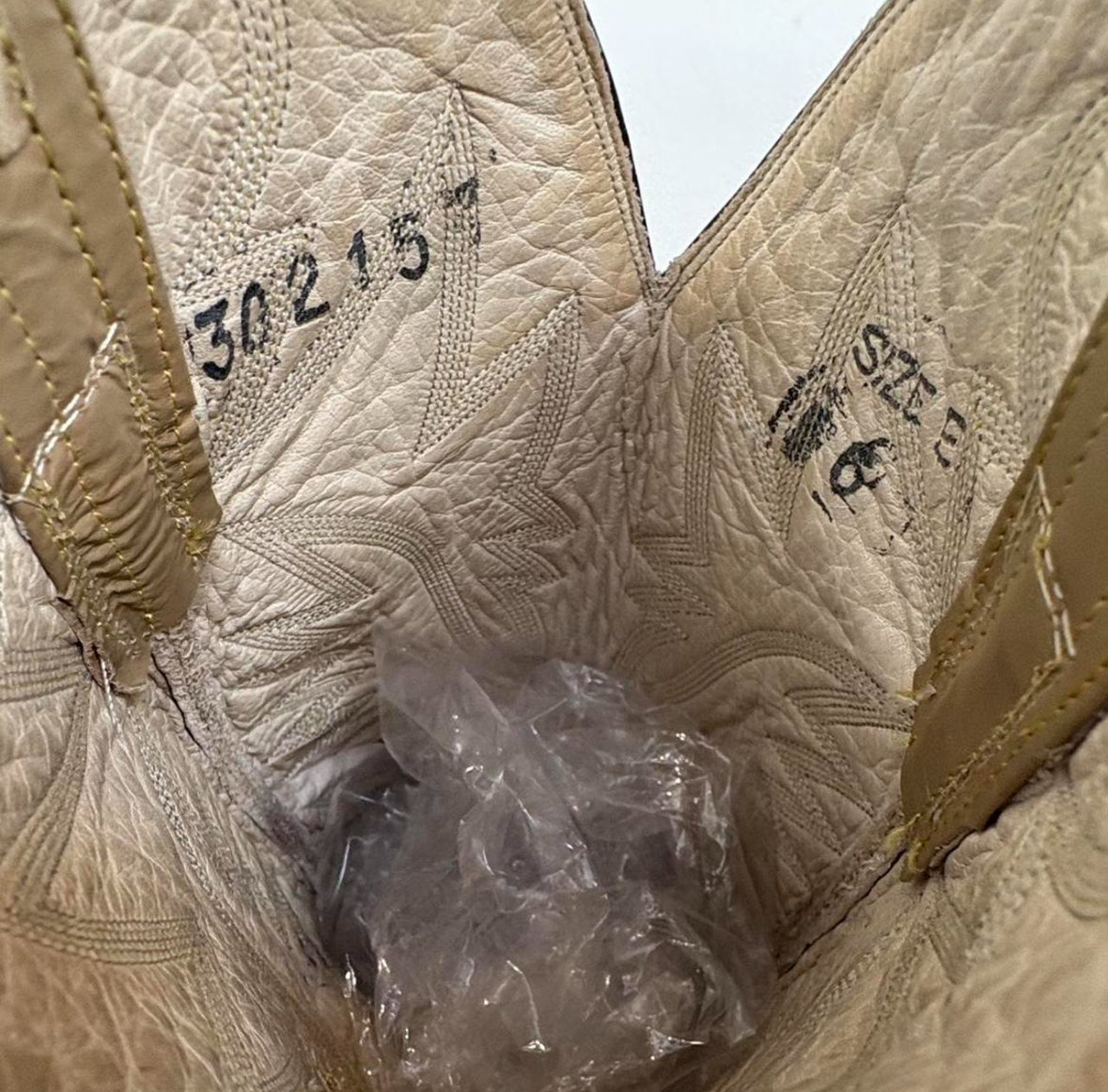 Authentic Vintage cream leather cowboy boots with a unique leather pattern and a western style embroidery