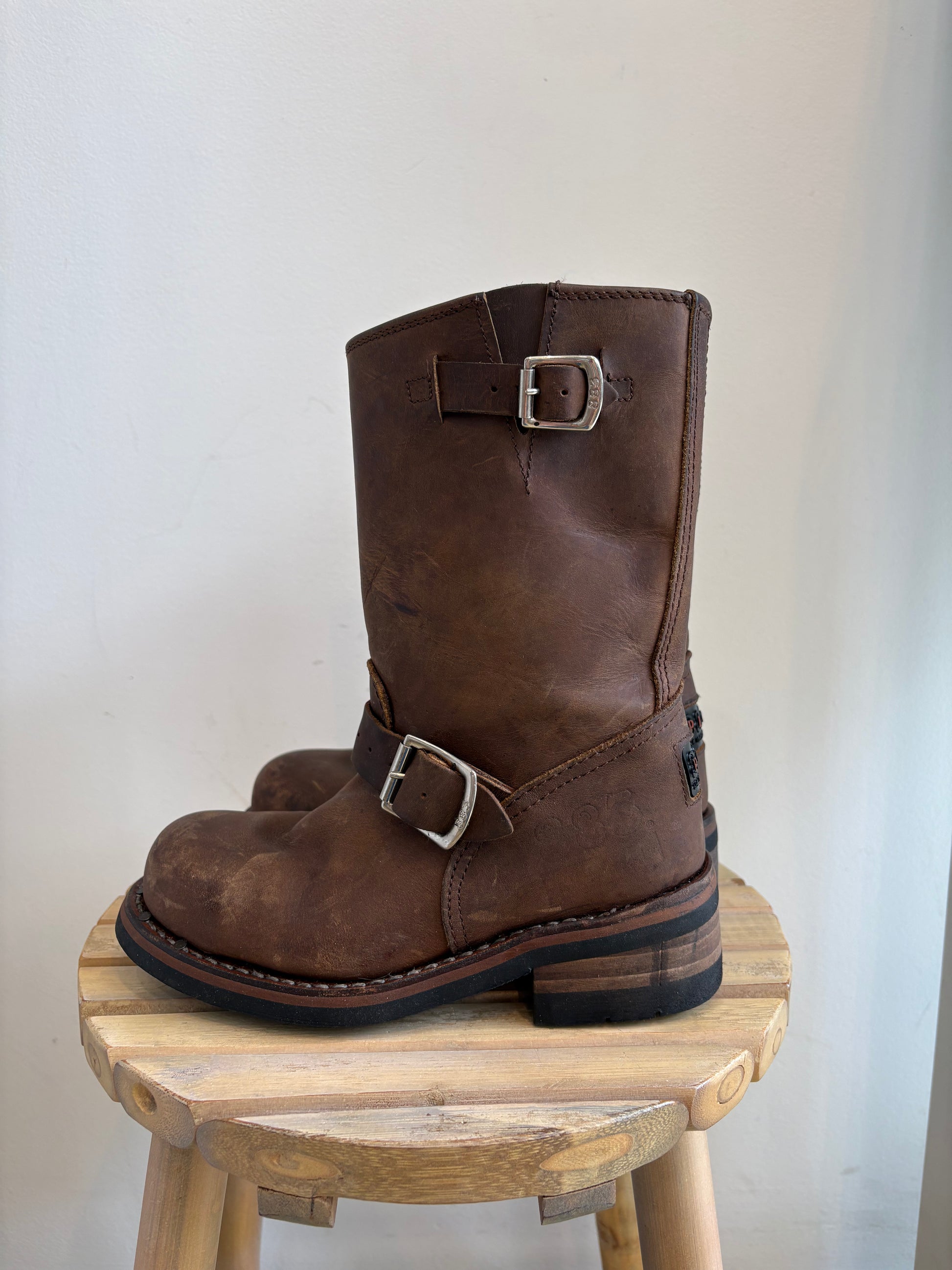 Authentic Vintage P.L.C 883 Brown leather boots featuring 2 silver hardware adjustable buckles